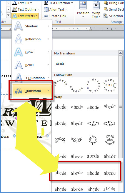 - selected theText Effects feature; and then